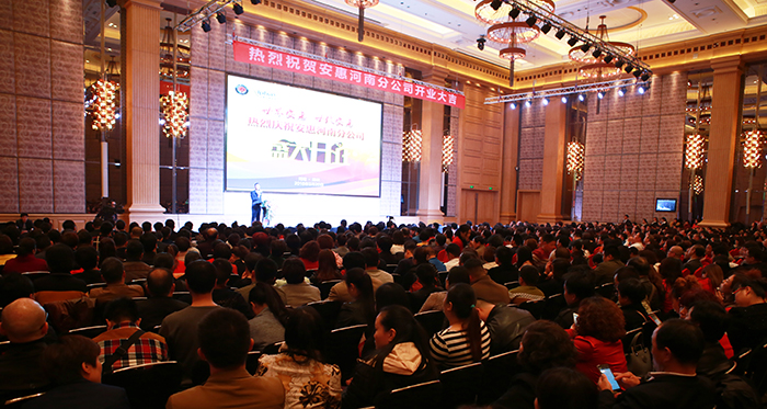 2016年3月20日,安惠河南分公司開業。簡樸的揭牌儀式上,陳惠董事長,施宏昌副總經理共同為分公司揭牌,總經理助理陳瑩瑩把安惠江海志愿者河南站的銅牌授予河南分公司總經理陳麗娟,100多位經銷商代表代表見證了這一重要時刻。開業慶典在鄭州裕達國貿酒店舉行,1200多位安惠優秀經銷商伙伴出席活動。從此在中原大地上,安惠人也有了自己的家。