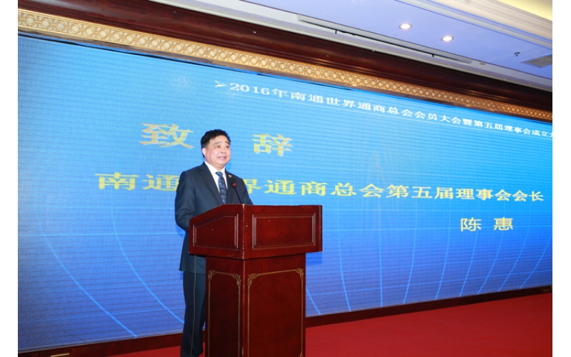 2016年2月18日,對于安惠家人來講,是個令人欣喜的好日子。在江蘇省人民政府外事僑務辦公室主任王華、南通市人民政府外事僑務辦公室主任王浦堅和近百位優秀通商代表的見證下,陳惠董事長當選南通世界通商總會第五屆理事會會長。