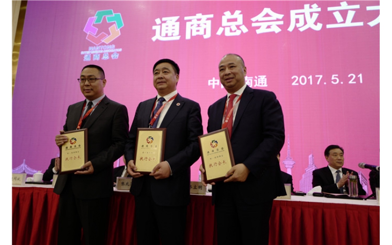 2017年5月21日下午,通商總會第一次會員代表大會隆重召開。會議通過了通商總會章程,選舉產生了通商總會執行會長、副會長和理事。安惠公司董事長陳惠與其他兩人當選為執行會長,南通市委副書記、市政府市長韓立明為他們授牌。