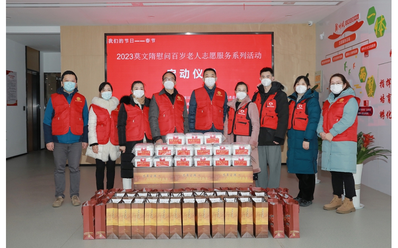 2023年1月16日,春節將近,2023莫文隋慰問百歲老人志愿服務系列活動正式啟動,安惠公司副董事長陸漢萍、安惠公司團委書記陳駿驊、南通開發區江海志愿總站站長姚衛民及安惠江海志愿者一起,給老人們送去溫暖和關懷,并致以節日的問候和祝福。